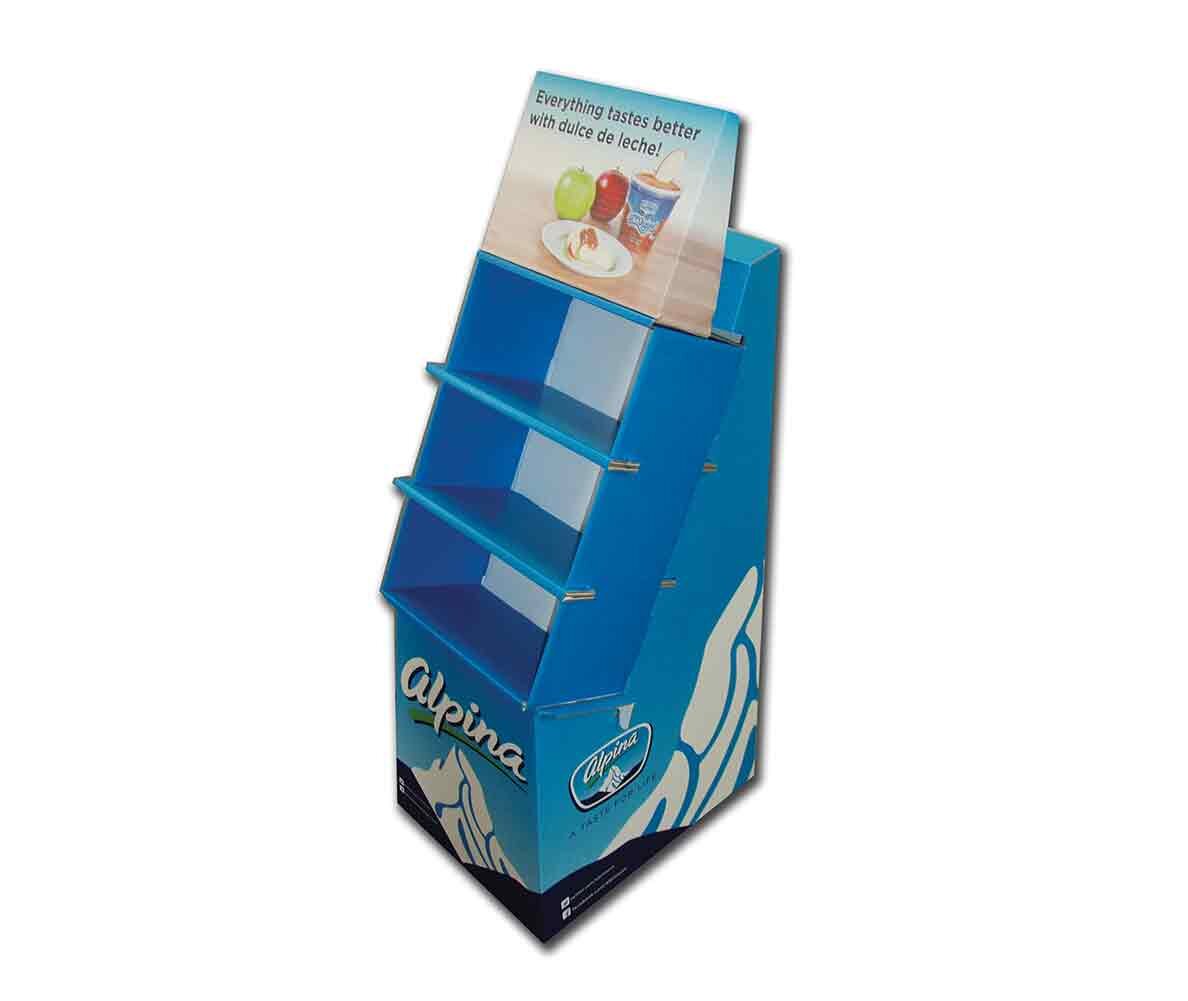 Leave a permanent impression with a custom temporary corrugated display designed and produced by The Alison Group. Custom corrugated displays are perfect for every industry who is looking for an affordable option to display their goods without sacrificing quality. Custom corrugated displays can be made into any shape, including curves, and can be designed and built to hold very heavy products. From standees, case stackers, case cards, dump bins, end caps, and floor & counter corrugate displays, we can design and create unique temporary displays that promote your product in the way that best suits your needs.